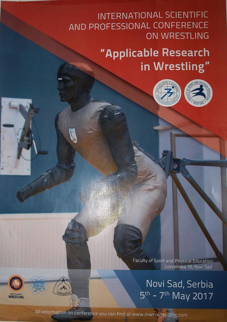 International scientific and professional conference entitled "Applicable research in wrestling" was held from 5th to 7th May 2017and it was organized by the Faculty of Kinesiology, University of Zagreb and the Faculty of Sports and Physical Education, University of Novi Sad and under the auspices of the International Network of Wrestling Researchers (INWR), the United World Wrestling (UWW) and the International Association of Sport Kinetics (IASK). The conference was held at the Faculty of Sports and Physical Education in Novi Sad and gathered more than hundred researchers, wrestling coaches and students from all over the world. Young scientists were awarded for best scientific works; Cristina Casals (Spain) won first place, Dragana Zanini (Serbia) won second place and third place was taken by Daichi Yamashita (Japan).